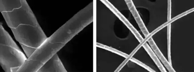 羊毛的毛鳞片是尖的,而羊绒的鳞片是圆形的,羊绒纤维是中空的,没有髓质层,因此羊绒的光泽更加丰盈柔和。
