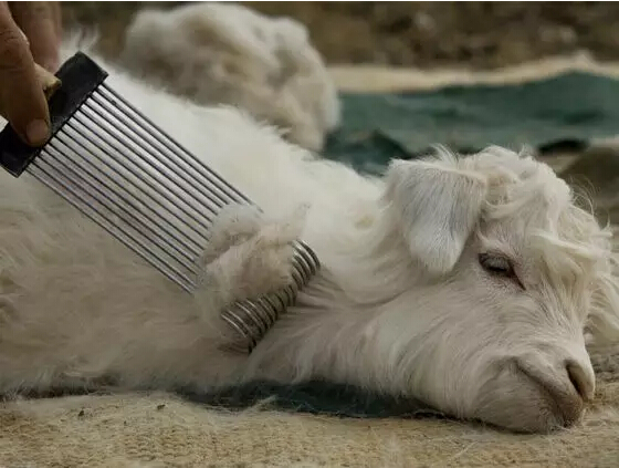 而羊绒长在山羊粗毛的根部,收集羊绒时要用特制的铁梳子像梳头一样一点点梳下来。